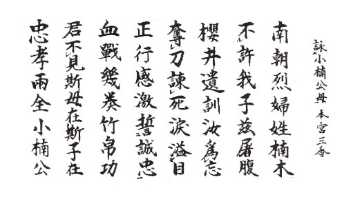 王法不可廢 臣節不可已 茫茫天地古今間 茲事獨許赤誠士