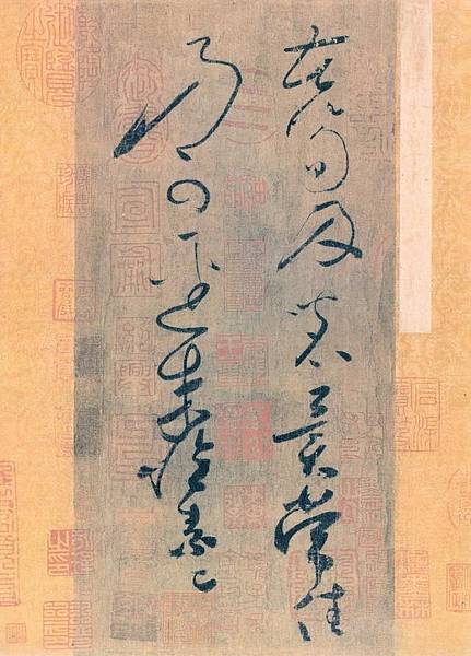 《苦筍帖》前有清代乾隆皇帝題簽和引首,帖後有歷代收藏題跋,並有宋、明、清歷代收藏家鑑賞印數十方。為《書畫記》、《平生壯觀》等著錄。這件"苦筍帖"是唐代草書大家懷素的傳世親筆墨跡之一。文字不多,總共才l4字,不僅能使我們觀賞到那嫻熟的筆法和行雲施雨、走蛇舞龍般的線條之美,同時還能直接感受到作者書寫時的內在氣質。