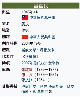 雖然現在的網絡已經無所不能,但是讓大家失望的是,網絡上找不到一張姜戎清晰的照片,可以查到的是,他原名呂嘉民,生於1946年,北京人,研究領域為政治經濟學,1967年姜戎赴內蒙古額侖草原插隊,1978年返城,1979年考入社科院研究生院。