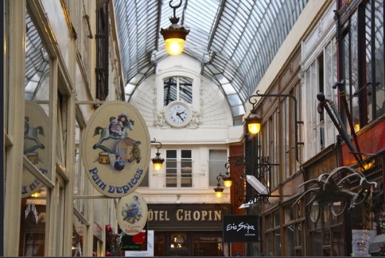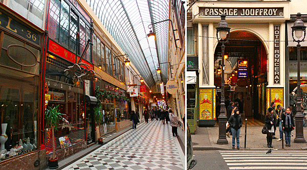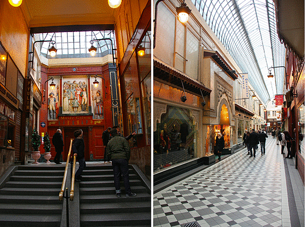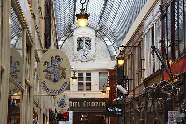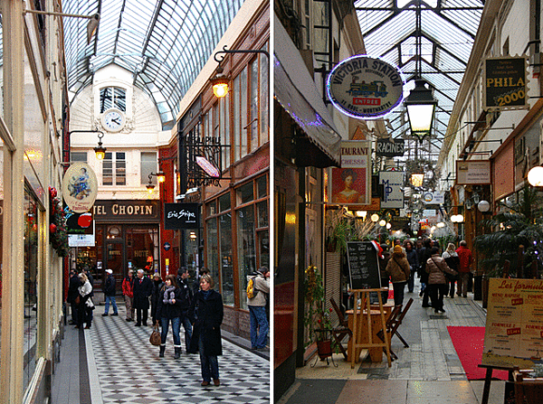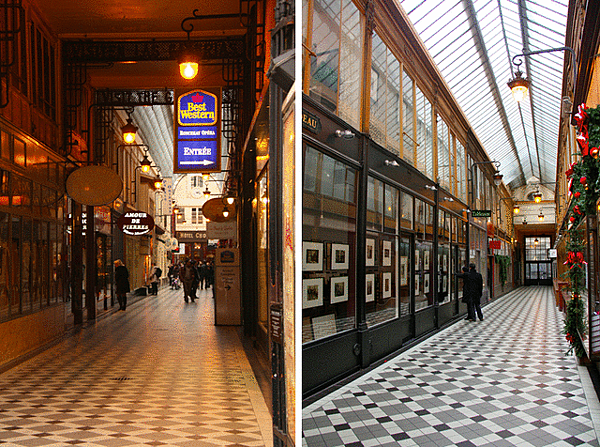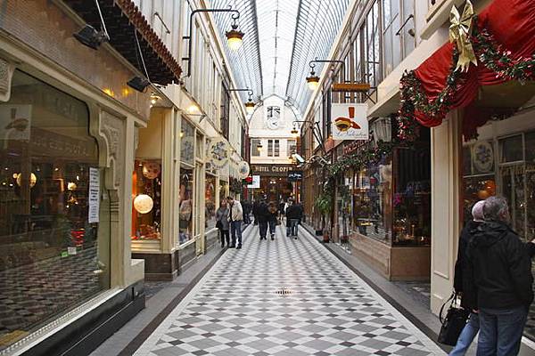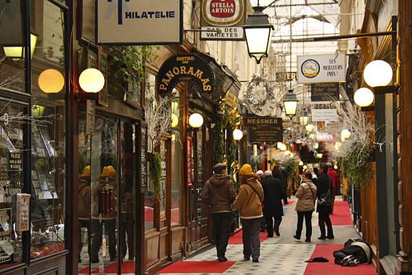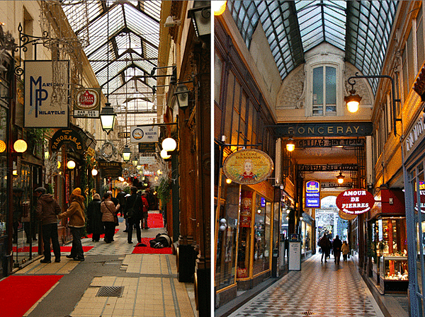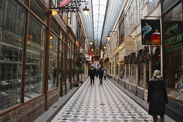巴黎的拱廊街,就是夾於建物之間的半室內長廊,兩側都有不同的店家,逛拱廊街,就像逛平面的百貨街一樣。