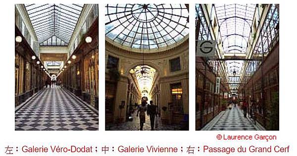 左:Galerie Véro-Dodat;中:Galerie Vivienne;右:Passage du Grand Cerf