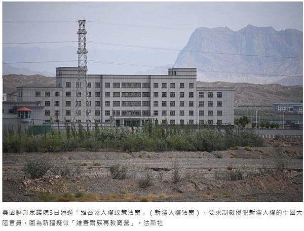 美國聯邦眾議院3日通過「維吾爾人權政策法案」(新疆人權法案),要求制裁侵犯新疆人權的中國大陸官員。圖為新疆疑似「維吾爾族再教育營」。法新社