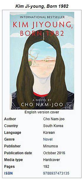 金智英( Kim Ji-young),生於1982年(韓語: 82歲)是小說家曹南珠的小說。曾任電視台節目編劇的趙振華花了兩個月的時間寫故事。據她說,標題人物“金智英的生活與我的生活並沒有太大不同。這就是為什麼我能夠這麼快地寫沒有太多準備。” 由Minumsa於2016年10月出版,截至2018年11月27日,該書的銷量已超過100萬冊,成為自2009年申京淑的《請照顧媽媽》以來的第一部銷量突破百萬的韓國小說。 [1] [2]