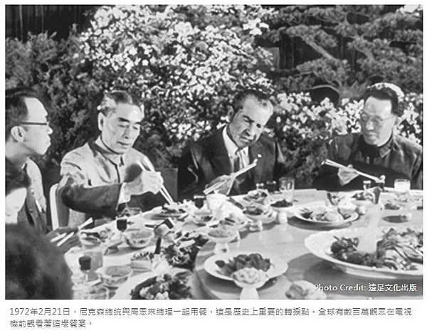 1972年2月21日,尼克森總統與周恩來總理一起用餐,這是歷史上重要的轉捩點。全球有數百萬觀眾在電視機前觀看著這場餐宴。