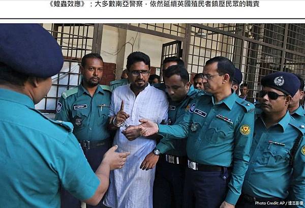 定義南亞警力的長串失能變得合理了。絕大多數警員當然從未受訓,以調查發生在大眾身上的日常犯罪。這不是殖民警察的工作。他們壓制動亂和暴徒。他們看守價值不菲的人員和設施。他們還摧毀挑戰政權的破壞力量。《蝗蟲效應》:大多數南亞警察,依然延續英國殖民者鎮壓民眾的職責 - The News Lens 關鍵評論網 http://bit.ly/2Lplyo7