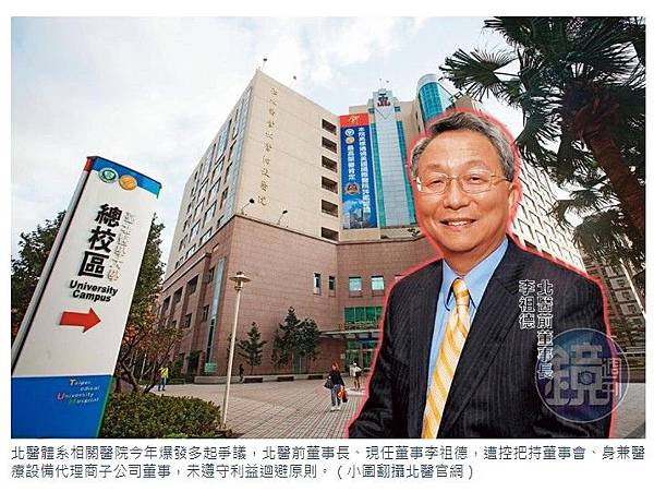 北醫體系相關醫院今年爆發多起爭議,北醫前董事長、現任董事李祖德,遭控把持董事會、身兼醫療設備代理商子公司董事,未遵守利益迴避原則。(小圖翻攝北醫官網)