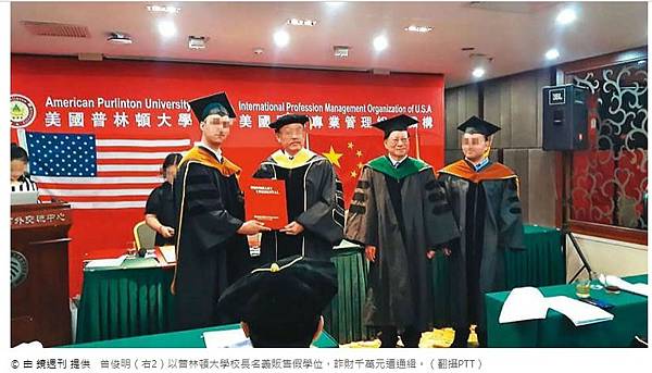 曾俊明(右2)以普林頓大學校長名義販售假學位,詐財千萬元遭通緝。(翻攝PTT)© 由 鏡週刊 提供 曾俊明(右2)以普林頓大學校長名義販售假學位,詐財千萬元遭通緝。(翻攝PTT)