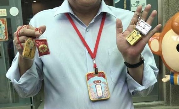平安符,裡面裝著嘉義市推出的防走失晶片。這種結合GPS定位和藍芽的小晶片,可以放在香火袋裡,讓長輩可以隨身攜戴 https://is.gd/AzBLun