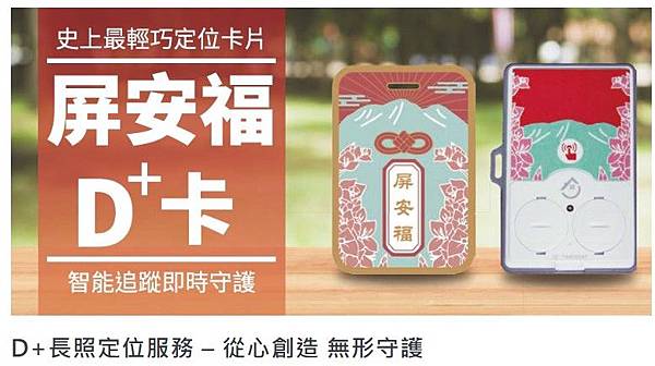 SOS一鍵按下 即刻通報 – 當配戴者離開使用者設定之守護範圍或按下SOS按鈕時,即會發送LINE推播至綁定之帳號-有GPS定位及SOS按鈕的「屏安福D+卡」+D+卡是為長者所需而設計,所以功能上非常親老,如蓄電量長達1年,同時能記錄健康指數並儲存雲端,且使用第一年免費,之後每月租費150元,將經濟負擔降到最低