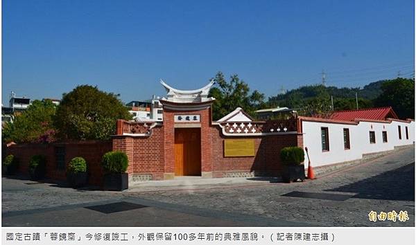 國定古蹟「蓉鏡齋」今修復竣工,外觀保留100多年前的典雅風貌。(記者陳建志攝)