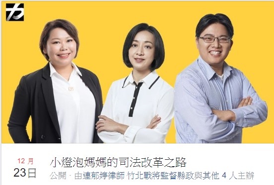與談人: 王婉諭 時代力量不分區立委候選人、小燈泡媽媽 邱顯智 時代力量不分區立委候選人、人權律師 高鈺婷 新竹市立委參選人 連郁婷 新竹縣議員