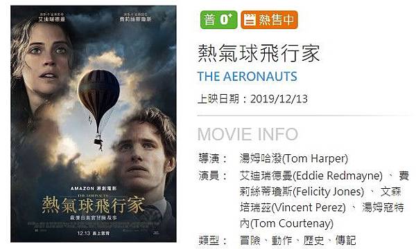 嗡嗡查到這部的英文名字叫做《The Aeronauts》而之前台灣翻譯中文是《天際傳奇》。