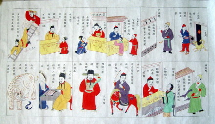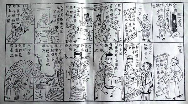 終日奔忙只為飢,才得有食又思衣;置下綾羅身上穿,抬頭卻嫌房屋低;蓋下高樓並大廈,床前缺少美貌妻;嬌妻美妾都娶下,又慮出門沒馬騎;將錢買下高頭馬,馬前馬後少跟隨;家人招下十數個,有錢沒勢被人欺;一銓銓到知縣位,又說官小職位卑;一攀攀到閣老位,每日思想要登基;一朝南面做天子,去想神仙下象棋;洞賓陪他把棋下,又問哪有上天梯;上天梯子未做下,閻王發牌鬼來催;若非此人大限到,上到九天還嫌低。