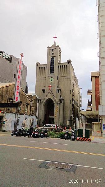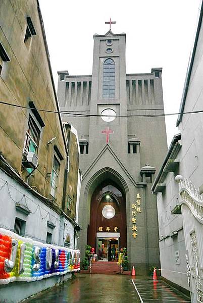 新竹聖教會位於新竹火車站附近的巷子裡,尖塔造型成為巷弄裡美麗的景色。(攝影/記者都希基路)