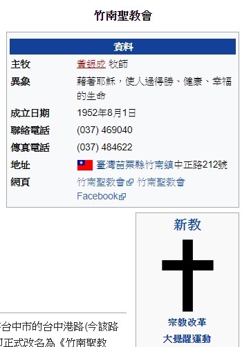 二、林天賜,“新竹聖教會簡介”,基督教台灣聖教會–台灣聖教會會史(1989), pp.94–95.