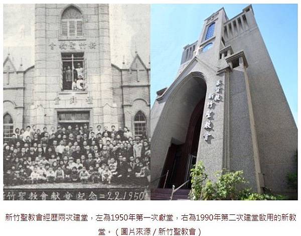 新竹聖教會經歷兩次建堂,左為1950年第一次獻堂,右為1990年第二次建堂啟用的新教堂。(圖片來源/新竹聖教會)