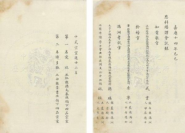 嘉慶十四年的恩科繙譯會試錄(中央研究院提供)