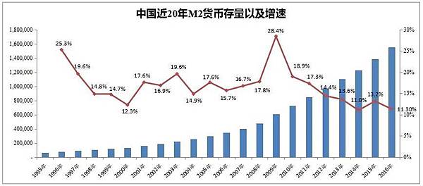 中國M2增速已經遠超GDP增速,而中國實際貨幣供給量遠遠高於理論上的貨幣供應量。