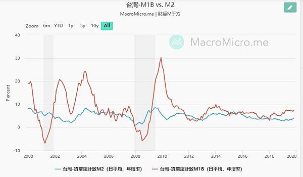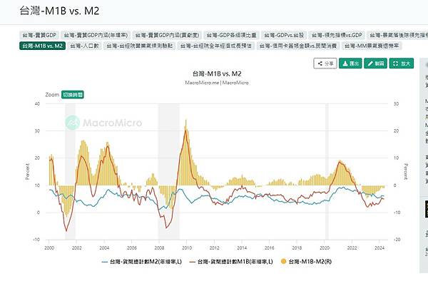 台灣-M1B vs. M2 | GDP綜合指標 | 圖組 | MacroMicro 財經M平方