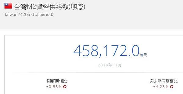 2019年11月台灣M2貨幣供給額(期底):458172億元 | Stock-ai,自由的全球總經百科