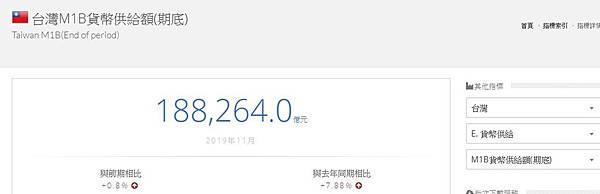 2019年11月台灣M1B貨幣供給額(期底):188264億元 | Stock-ai,自由的全球總經百科