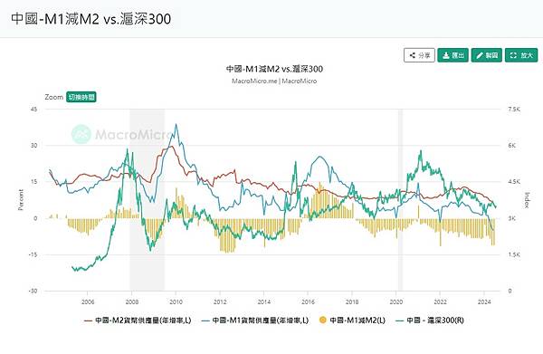 中國-M1減M2 vs.滬深300 | MacroMicro 財經M平方