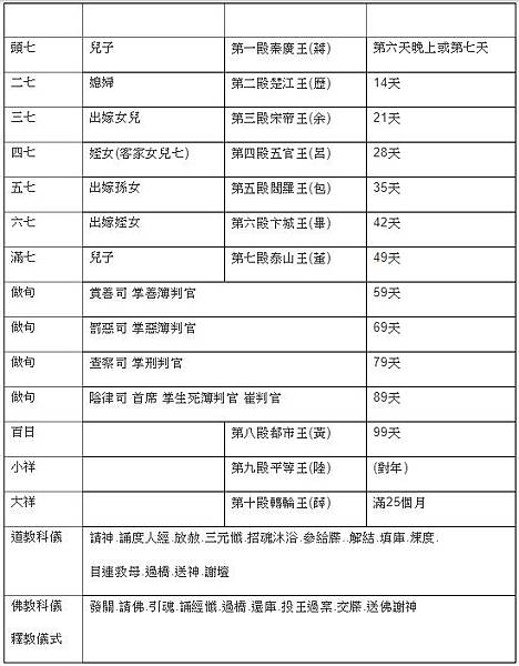 ※ 一~七之忌,俗稱做旬,教儀稱「屆丁旬,開通冥路」