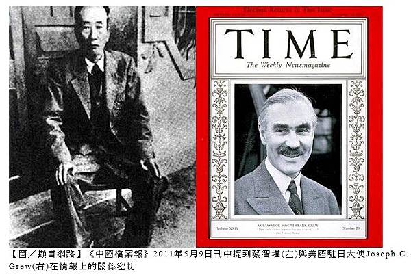 【圖/擷自網路】《中國檔案報》2011年5月9日刊中提到蔡智堪(左)與美國駐日大使Joseph C. Grew(右)在情報上的關係密切