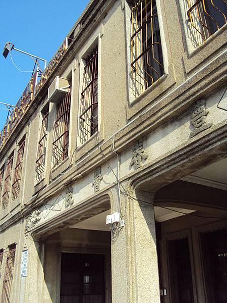 很有古厝氣派。屋頂瓦片為日式黑瓦,中西合壁建築,其巴洛克式鑲版改以堂號代替