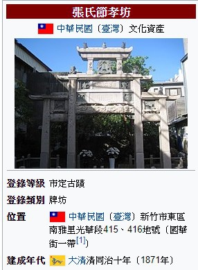 張氏節孝坊 (新竹) - 維基百科,自由的百科全書 http://bit.ly/2NgTjsJ