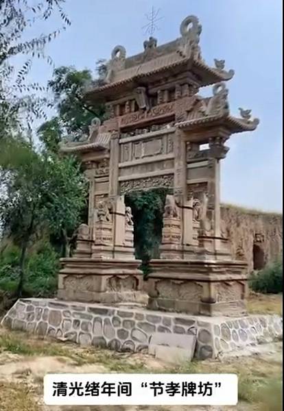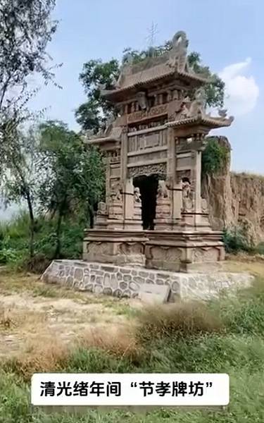 清光緒年間的“節孝牌坊”。它是為由張逢泰(貢生)之子張瀛清(秀才)奉旨為其母楊氏而建,二十三歲夫亡守寡到死,位于山西霍州張灣村。影片 | Facebook https://bit.ly/47y8aXC