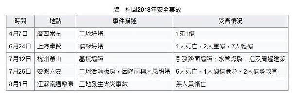 而在接下來的時間內因加速施工,碧桂園旗下的房地產項目也頻發安全事故[4]: