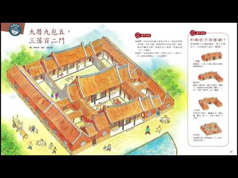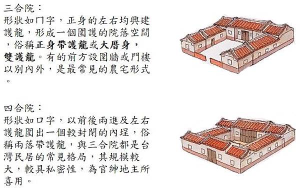 有關臺灣傳統建築之圖解,假如您能到圖書館找到《臺灣古厝圖鑑》《臺灣古建築圖解事典》等書,就可看到圖解。而有關「大厝九包五,三落百二門」之資料,答復如下:
