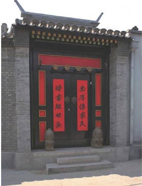 此外,四合院雖為居住建築,卻蘊含著深刻的文化內涵,是中華傳統文化的載體。四合院的建設極講究風水學說,實際是中國古代的建築環境學,是中國傳統建築理論的重要組成部分;四合院的裝修、雕飾、彩繪也處處體現著民俗民風和傳統文化,表現出人們對幸福、美好、富裕、吉祥的追求,如以蝙蝠、壽字組成的圖案,寓意“福壽雙全”;以花瓶內安插月季花的圖案寓意“四季平安”;而嵌於門簪、門頭上的吉辭祥語,附在抱柱上的楹聯,以及懸掛在室內的書畫佳作,更是集賢哲之古訓,采古今之名句,或頌山川之美,或銘處世之學,或詠鴻鵠之志,風雅備至,充滿濃郁的文化氣息,有如一座中國傳統文化的殿堂。