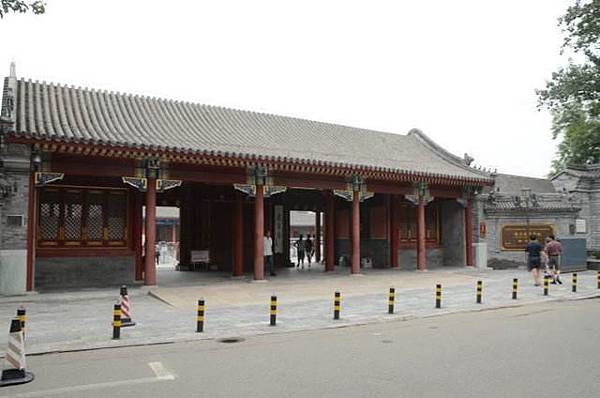 北京四合院住宅的大門,從建築形式上可分為兩類,一類是由一間或若干間房屋構成的屋宇式大門,另一類是在院牆合隴處建造的牆垣式門。 設屋宇式大門的住宅,一般是有官階地位或經濟實力的社會中上層階級;設牆垣式大門的住宅,則多為社會下層普通百姓居住。 屋宇式大門分為幾個等級。 王府大門 王府大門是屋宇式大門中的最高等級。 通常有五間三啟門和三間一啟門兩等。 這種大門座落在主宅院的中軸線上,宏偉氣派。