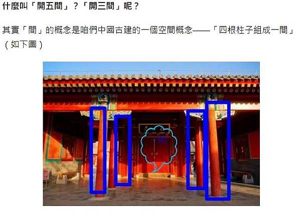 即傳統建築計算正面寬度的單位,一個開間是指四根柱子構成的平面空間。