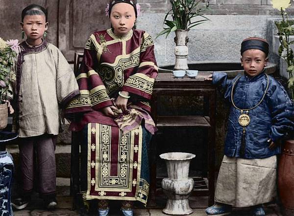 1900左右,台南安平富裕人家閒適生活留影,家中裝潢反映富人的生活情趣。