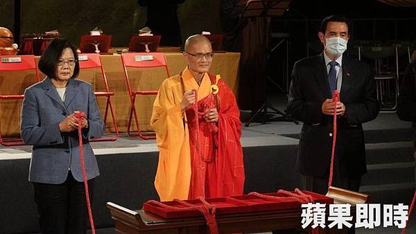 蔡英文總統與前總統馬英九一起為法鼓山撞鐘祈福,活動吸引3千多位善男信女參加。(張睿廷攝)