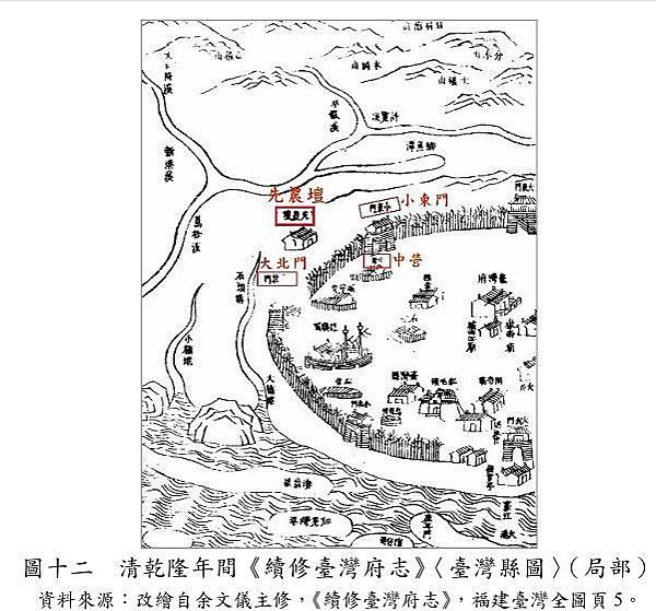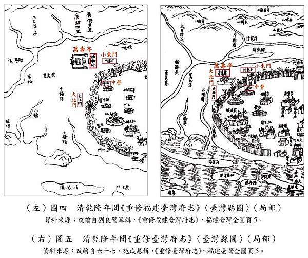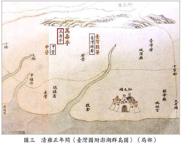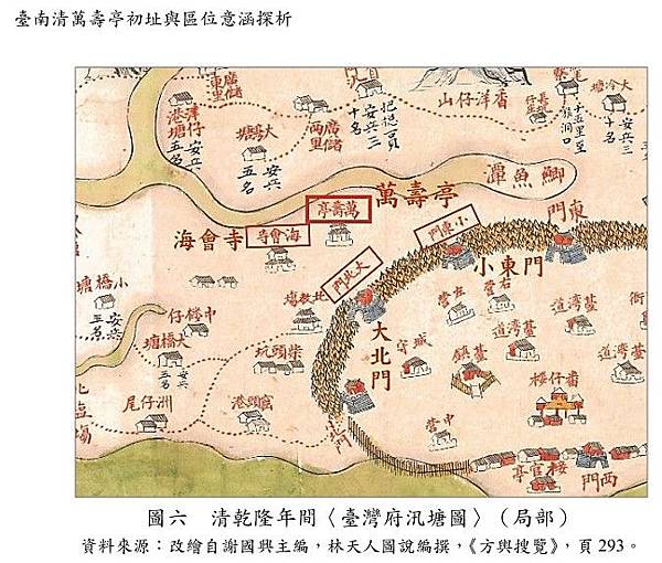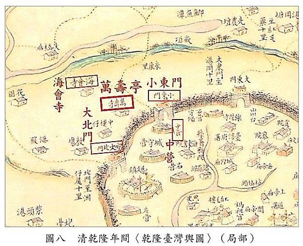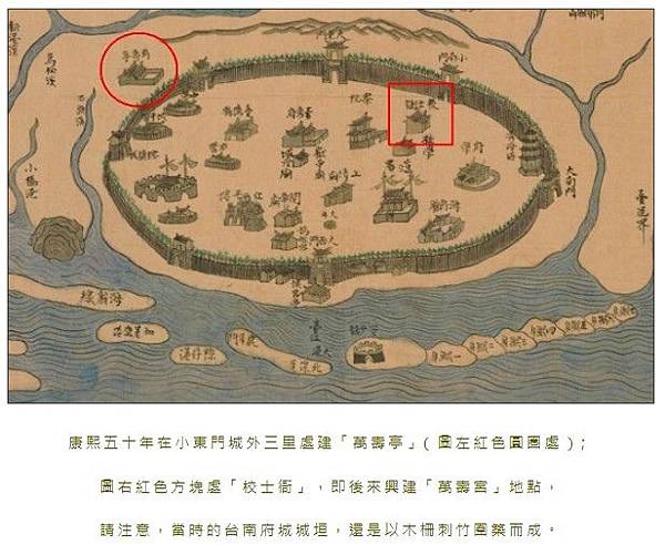 康熙五十年在小東門城外三里處建「萬壽亭」( 圖左紅色圓圈處 );