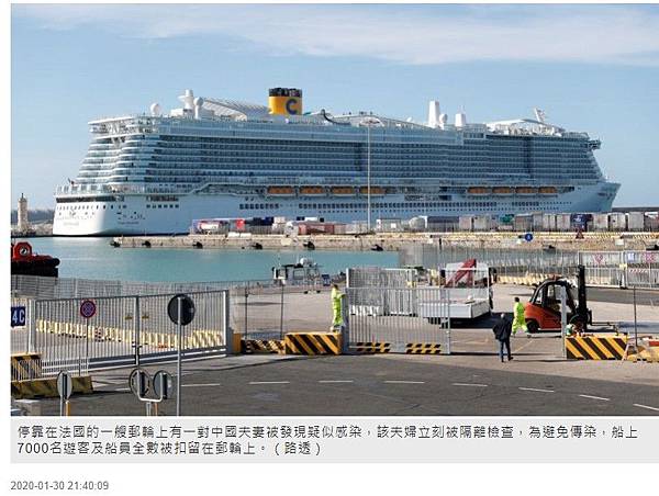 武漢肺炎》澳門夫妻疑感染 郵輪上7000人全困在義大利 - 國際 - 自由時報電子報