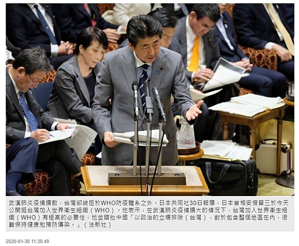 武漢肺炎》日本首相安倍晉三公開挺台加入WHO - 國際 - 自由時報電子報