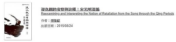 出版日期:2015/08/24 復仇觀的省察與詮釋: 宋元明清編 - 李隆獻 - Google 圖書