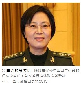 陳薇曾促使中國自主研製的伊波拉疫苗,首次獲得境外臨床試驗許可。 圖:翻攝自央視CCTV© 由 新頭殼 提供 陳薇曾促使中國自主研製的伊波拉疫苗,首次獲得境外臨床試驗許可。