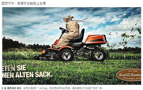 © 由 遠見雜誌 提供 在西方俚語中「old bag」有沒用老傢伙的貶意,網站廣告大方地幽了自己一默。