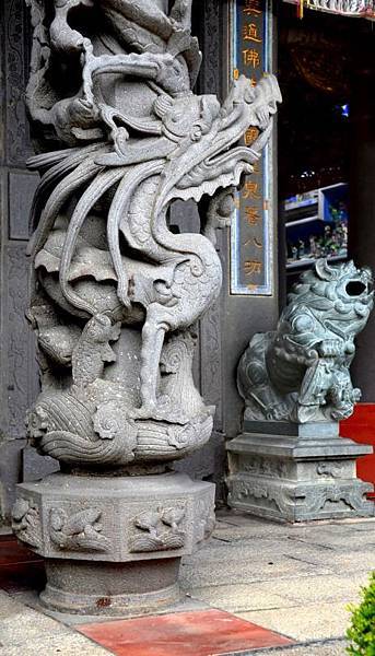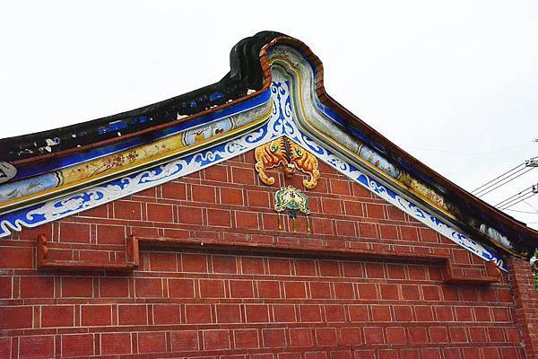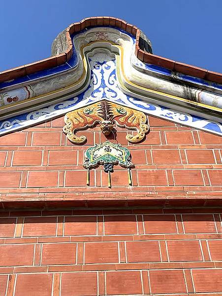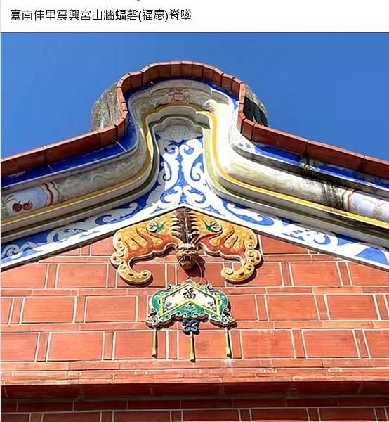 臺南佳里震興宮護龍蝠磬(福慶)脊墜與鳥踏 鳥踏,牆面2/3處凸出牆面之結構,用以承接雨水避免整個牆面濕透.因常見鳥類佇足行走,故稱鳥踏