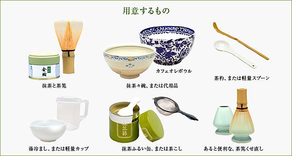 以上就是抹茶茶具的基本配備表。如果只是想要簡單的喝一杯抹茶,不考慮流派的繁複規則的話,可以簡化到只需要準備茶碗、茶筅即可。