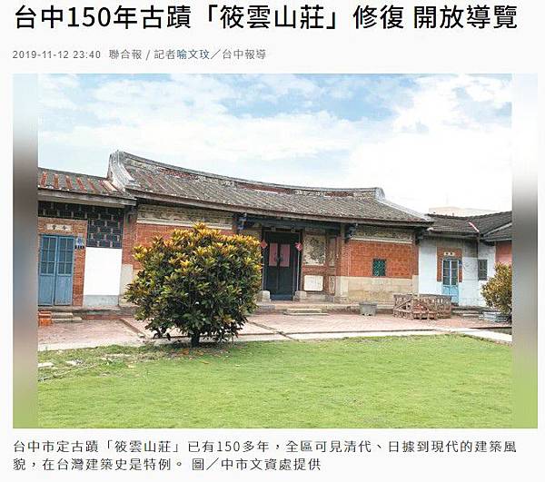 台中150年古蹟「筱雲山莊」修復 開放導覽 | 台灣百寶鄉 | 地方 | 聯合新聞網