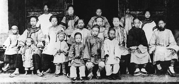 年代:日大正7年(西元1918年):此張黑白舊相片為石圍墻(今泰興里)陳屋全家福照,拍攝於日大正7年(西元1918年)11月,拍攝地點在昔日的陳屋伙房前,當時係請東勢街上的照相館前來擺設佈景及拍攝。此張舊相片中的男性為陳松興先生,乘坐於圓凳上的年輕女性是陳松興先生的妻子劉阿黎女士,當時劉女士身穿傳統客家服飾立領大襟衫、大襠褲,腳著鞋頭向上翹起如鉤子形的勾鞋(翹鞋、勾嘴鞋),大襟衫領口繡有裝飾,大襟衫上有闌干(鑲緄配布外緣加縫的花邊織帶),袖口反摺部分亦有鑲緄裝飾。由此舊相片中並可見紅板瓦、卵石牆基的傳統客家伙房建築,小桌上還有日大正年代的座鐘與花盆…。 http://bit.ly/2HSZUqg
