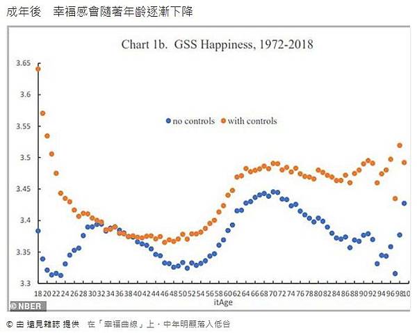 而這樣的不幸福,會隨著工作的積累、主管交派任務的壓力、成家立業後的家庭責任等因素不斷考驗意志力,幸福感會在中年時到降谷底。