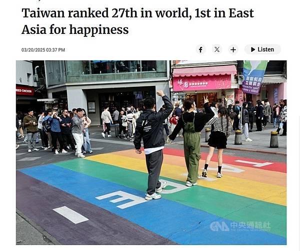 2024全球幸福報告 台灣「30歲以下年輕人」幸福感東亞第一 - 國際 - 自由時報電子報 https://bit.ly/4a1Fh6T